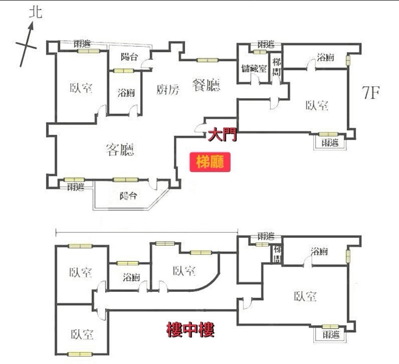 一層一戶,大邊間通風採光佳,稀有樓中樓,四衛浴皆開窗